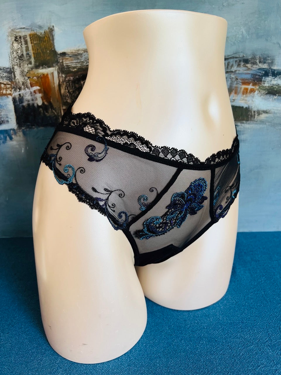 La culotte italienne combine des caractéristiques des strings et des tangas et offre à la fois une sensation de confort et une esthétique flatteuse. Elle déploie à l'avant et à l'arrière de la broderie qui donne un effet raffiné.