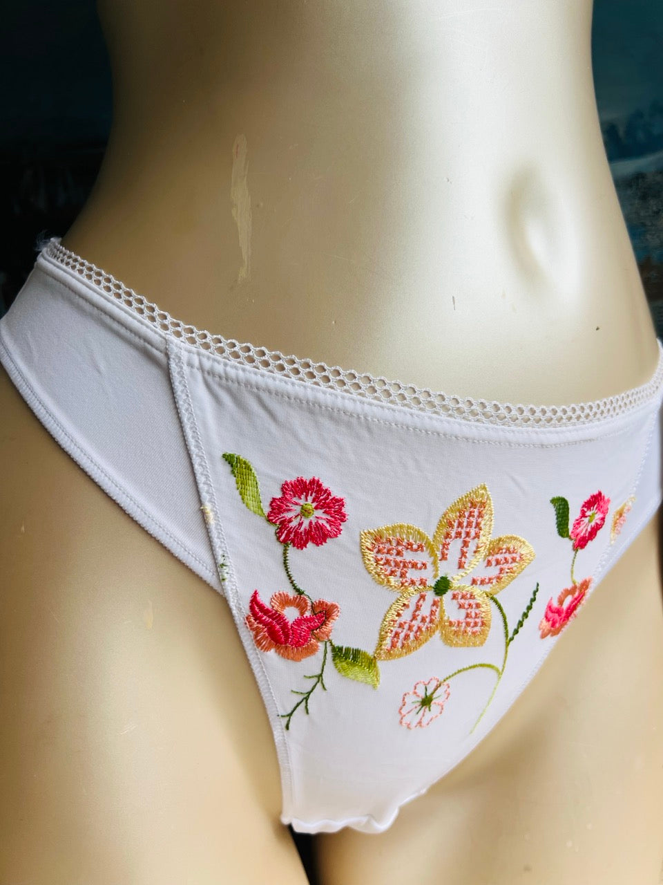 La collection MANDA de Simone Pérèle est une lingerie blanche ornée de fleurs brodées rose orangé jaune qui mettent en valeur la féminité avec douceur. Ce jeu de motifs lumineux et vibrant captent la lumière et ajoute une touche poétique à l’ensemble.