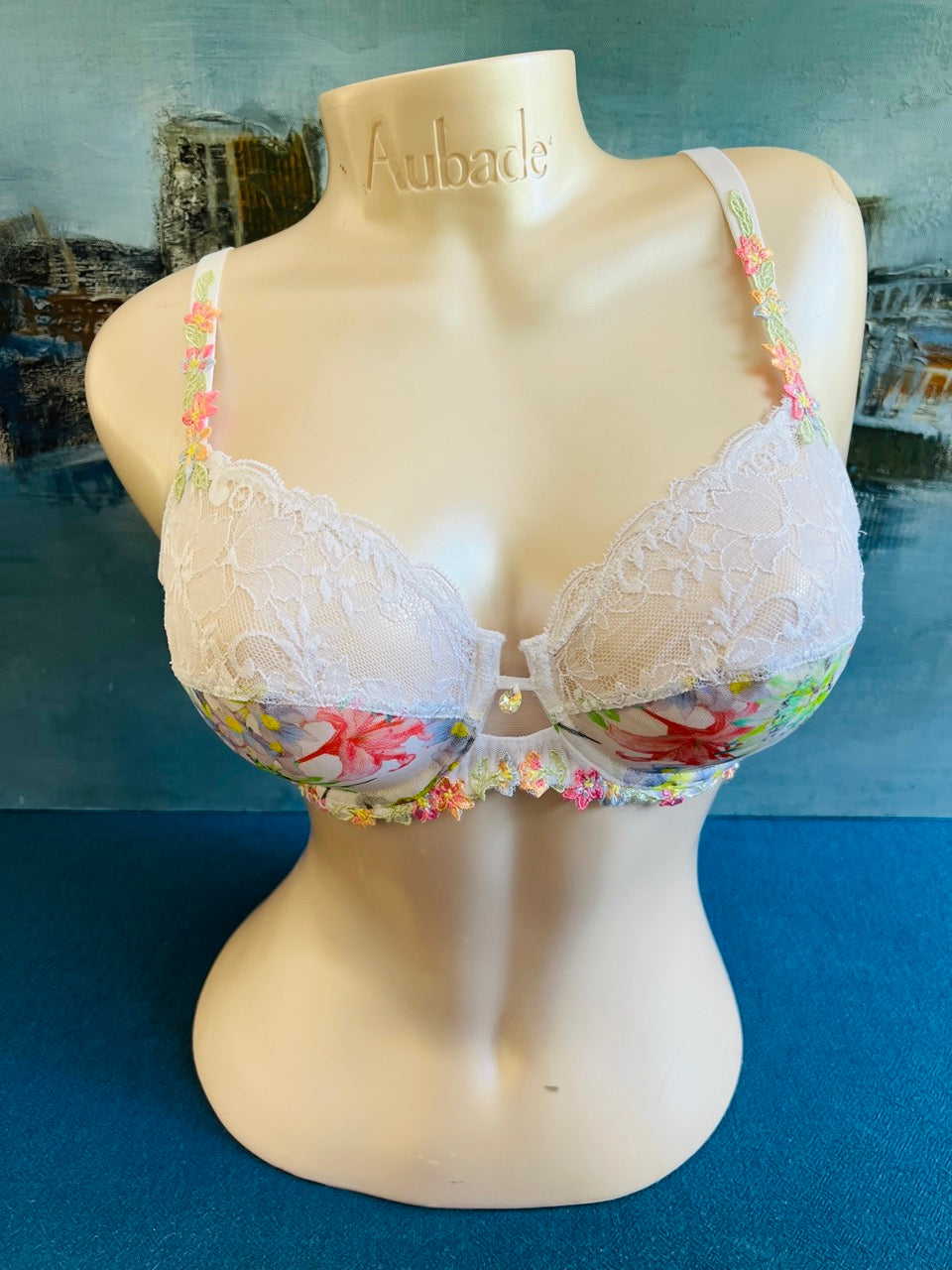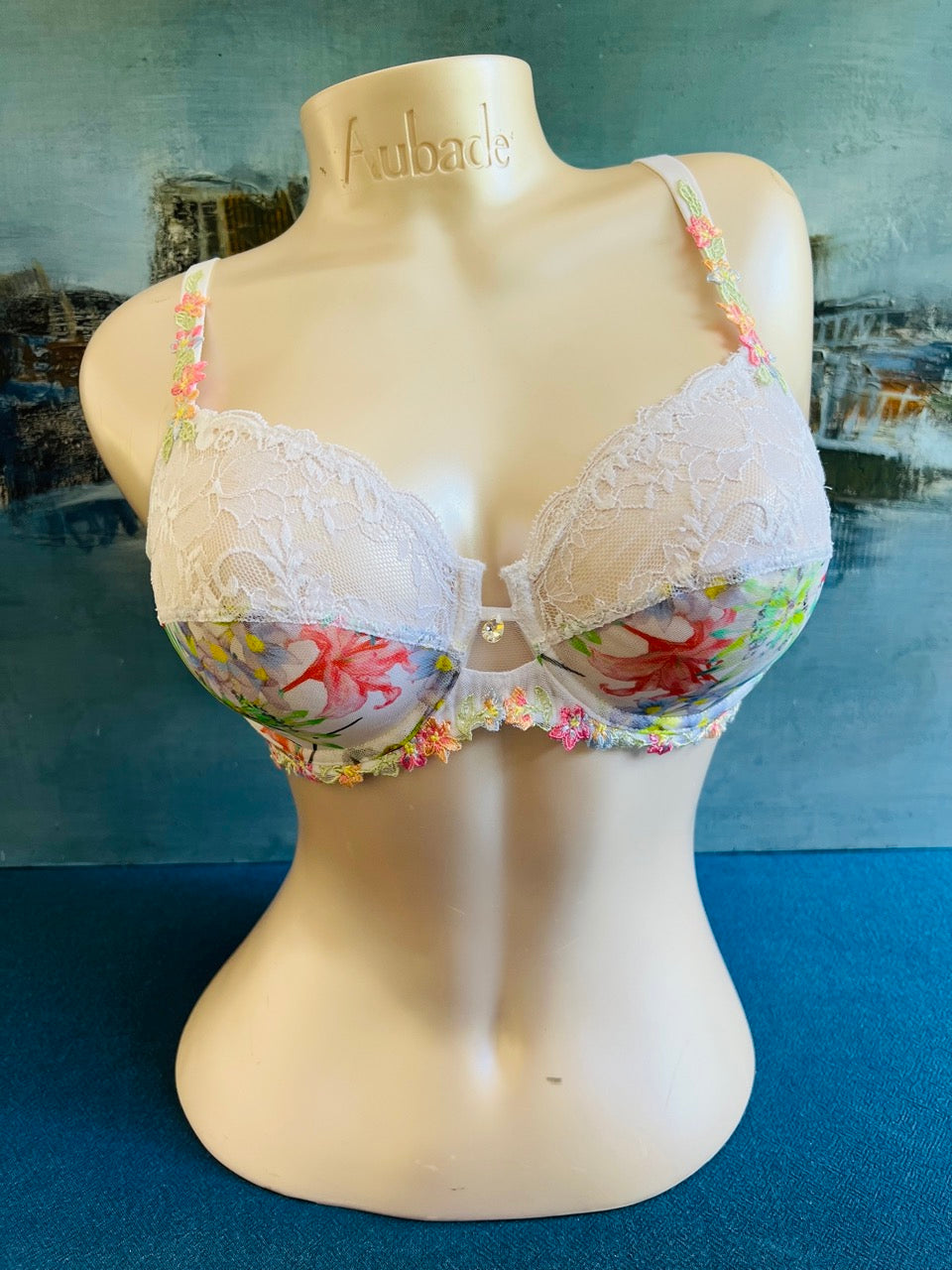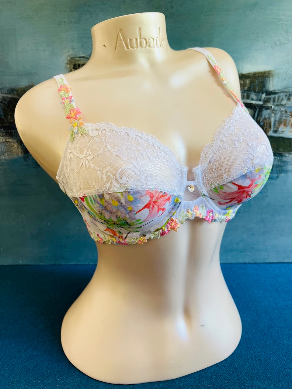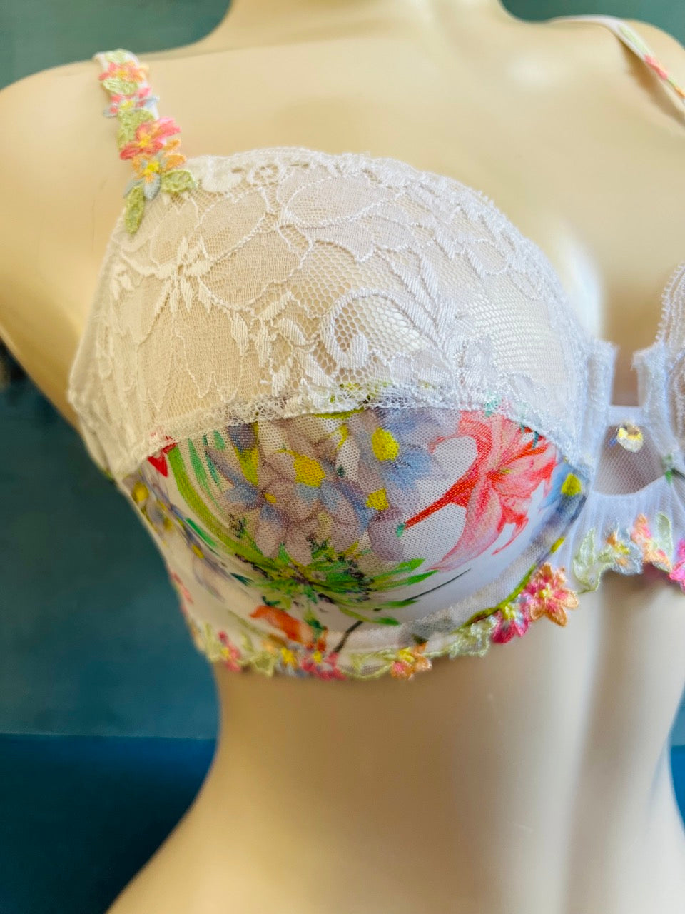 La lingerie Lise Charmel, collection "Désir Iris" est une ode à la féminité poétique et à l’élégance florale. Les pièces évoquent une légèreté luxueuse. La dentelle, délicatement ajourée, laisse deviner la peau avec grâce et subtilité, soulignant chaque courbe avec délicatesse. Elle est travaillée dans un motif fin qui rappelle les arabesques d’un jardin à la française, tout en gardant une allure résolument moderne.