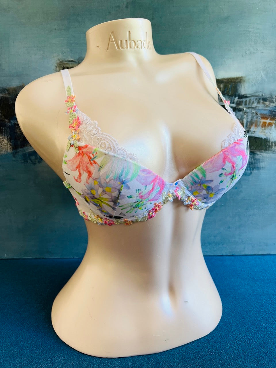La lingerie Lise Charmel, collection "Désir Iris" est une ode à la féminité poétique et à l’élégance florale. Les pièces évoquent une légèreté luxueuse. La dentelle, délicatement ajourée, laisse deviner la peau avec grâce et subtilité, soulignant chaque courbe avec délicatesse. Elle est travaillée dans un motif fin qui rappelle les arabesques d’un jardin à la française, tout en gardant une allure résolument moderne.