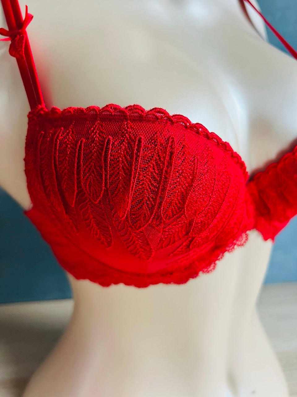 Dans une couleur rouge intense et captivante, la pièce attire immédiatement le regard. Le rouge apporte une dimension passionnée et glamour, idéale pour une lingerie qui assume pleinement son caractère séduisant.